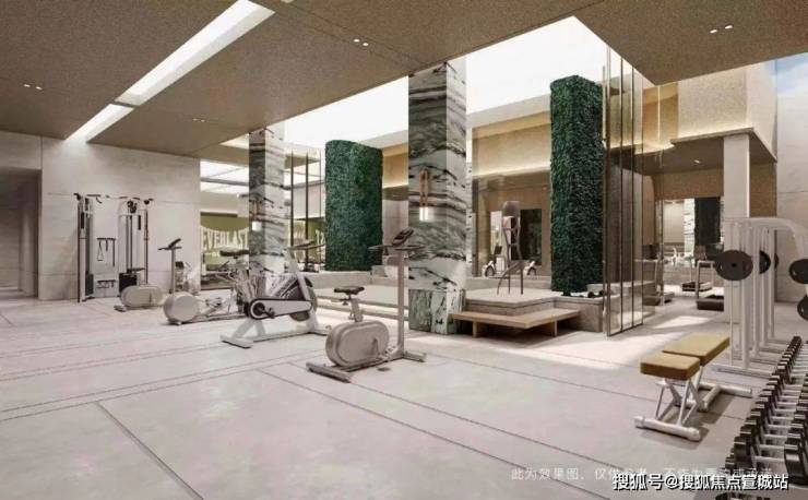 其中西俱乐部以 商务休闲为主题,总建面约 13000m²,汇聚健身房、会客大堂、恒温泳池等功能空间。