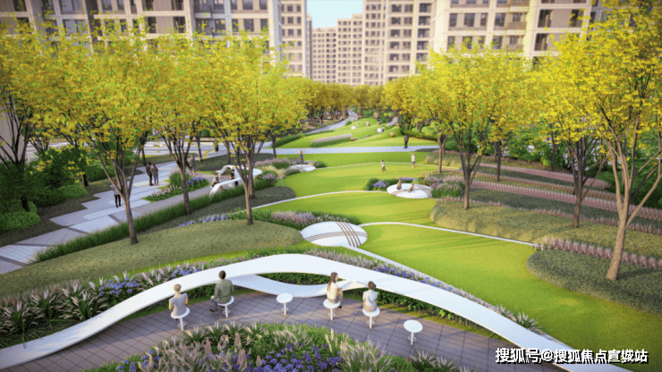 景观设计:社区内部规划约 50,000㎡森氧景观,融合三条主题林荫步道与圆形景观节点,形成 “绿林项链” 漫步系统,还有六大功能价值叠加,满足全龄段业主休闲需求。