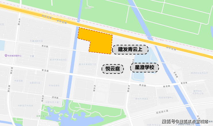项目东边紧邻建发青云上小区,西边是伟才厚永幼儿园,星澄学校也在附近。需要注意的是,北侧靠近中环东线和京沪高铁,未来可能会有一些噪音。