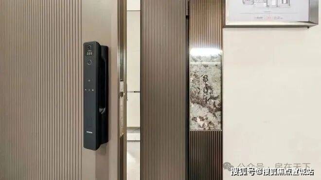 大门更是自带猫眼的四合一智能门锁,配合定制的门牌号与logo集合而成的入户门,彰显着主人的品位与尊贵地位。