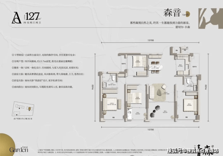 户型信息:高层主力户型为建面约127-138㎡的4室2厅2卫,别墅户型为建面约302-306㎡的5室2厅4卫。