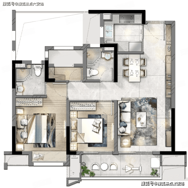 建面约89㎡舒居三房,以不将就的理想家境,安放属于二人世界的品质生活。三开间朝南和宽景阳台设计,不仅带来优阔采光面,更兼顾全明通透的尺度感。LDK客餐厨一体化设计+百变空间的功能布局,拥有令人赞叹的灵动性。动线更为流畅的U型明厨,洗、切、炒、盛一气呵成,幸福感油然而生。一屋、两人、三餐、四季,生活最简单的样子。