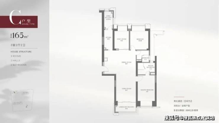 ②:有南向阳台,符合生活习惯,可以是晾晒区,也可以是业主侍弄花草、休闲品茶的角落。