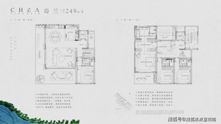 以建面约210㎡的上叠“云雾”和建面约221㎡的下叠“旗枪”为例。月陇云岚解决了很多叠院上下叠共用电梯这个痛点,在这个项目里,所有的户型都是私梯入户的。下叠入户口在南向花园,上叠在一楼也有北向私梯入户花园空间。