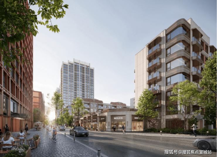 项目采用“围合+轴线”布局,重现了海派里弄的围合感与街区韵律,暖色贝金米黄石材搭配红洞石墙面,融合性新海派风格在前滩元境中获得系统性的诠释,放佛一座微型衡复风貌区,唤醒城市记忆。