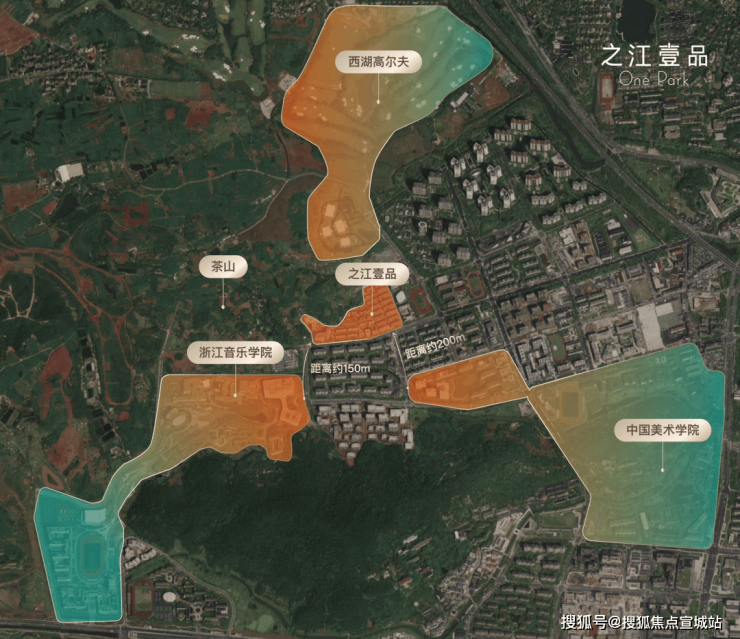距离地铁6号线美院站直线约1.3公里、规划12号线站点直线约1公里(具体等官方);200米中国美院,一路之隔浙江音乐学院,毗邻江文化中心“浙江四馆”,背倚白沙茶山,北接约4000亩西湖高尔夫球场(本届亚运赛场),轻松享有品茗、挥杆的乐趣.