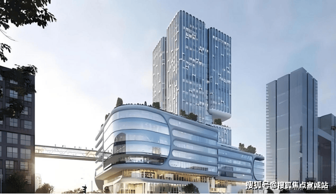 摩登钻幕地标灯塔建筑,以半岛酒店为源,融合百年海派文化,横向全玻璃幕墙,让城园尽揽于心;隽永石材、圆弧铝板、鎏金镶边、极简线条等,成就历久弥新的经典;悬挑天际浮岛屋檐,搭配全景环幕观景台,重构上海天际线。