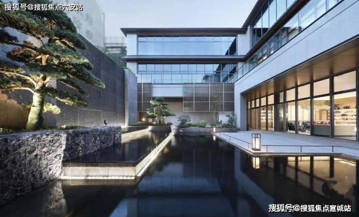 不止飞瀑,实际上在河印府的示范区中,水是贯穿其中的重要元素,从前场到过渡空间再到下沉庭院,或镜面、或溪涧、或叠水,通过不同的形式形成了概念上的「山环水绕」,也是寓意上的好彩头。