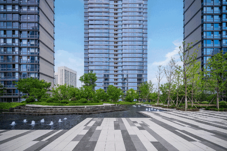 园林景观:绿植布置结合苏州当地气候,注重季相和色彩变化,种植樱花、银杏、红枫等树种,搭配舒缓大草坪、聚会廊架、叠级水景等景观,园中小径曲径通幽,实现移步易景的效果。