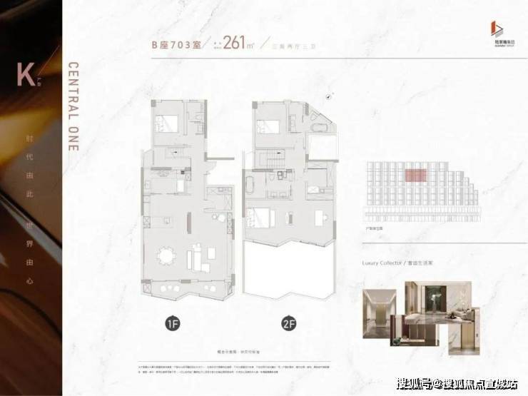 户型:建面约 146 - 261㎡准现房,有 6 套约 179 - 261㎡露台复式,共 27 套 3 - 4 房户型(部分为复式)。