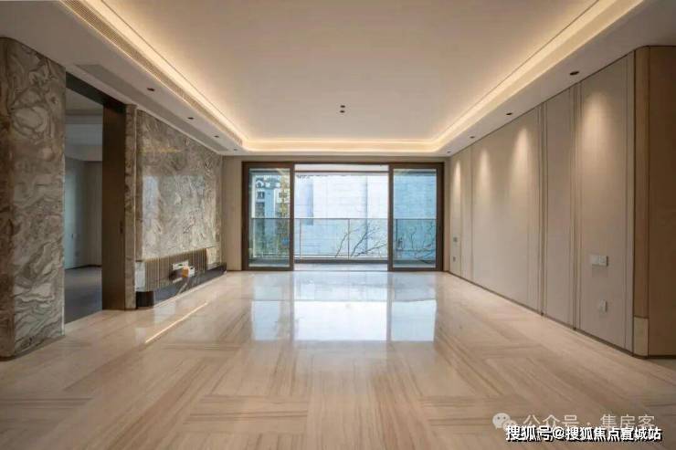 采用“王府中式”设计,大门为歇山顶形制(宽53米、高近11米),配黄铜狮、罗汉松及蓝翡翠奢石。园林融入西湖十景元素,如“花港观鱼”水景、“柳浪闻莺”绿植,并设雾森系统首层单元门厅石材铺就,肌理沉稳。
