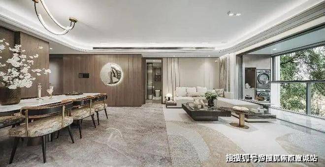 电视背景墙选用带有东方意蕴的万里河山石材,✅✅保利海上瑧悦售楼处电话:400-8862-334✅✅颜值超高!