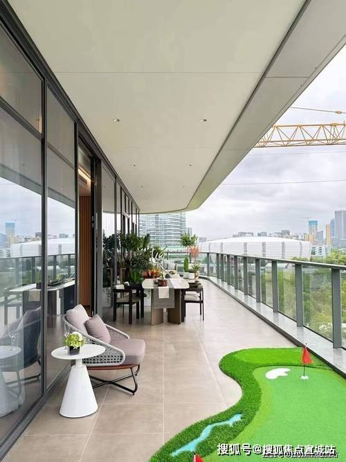 50米U型环幕阳台:户户配备270°跑道式阳台,部分户型退台设计形成700㎡空中庭院,实现无界视野与自然融合。