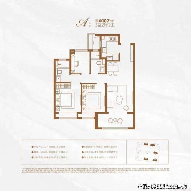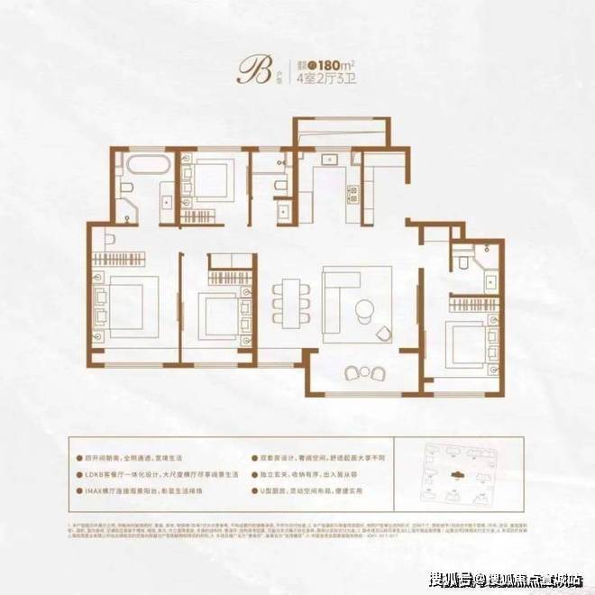 户型特色:107㎡三房三开间朝南,LDKB 一体化布局,U 型厨房 + 双卧飘窗;180㎡四房五开间朝南,双主卧套房设计,客厅面宽达 7.2 米。
