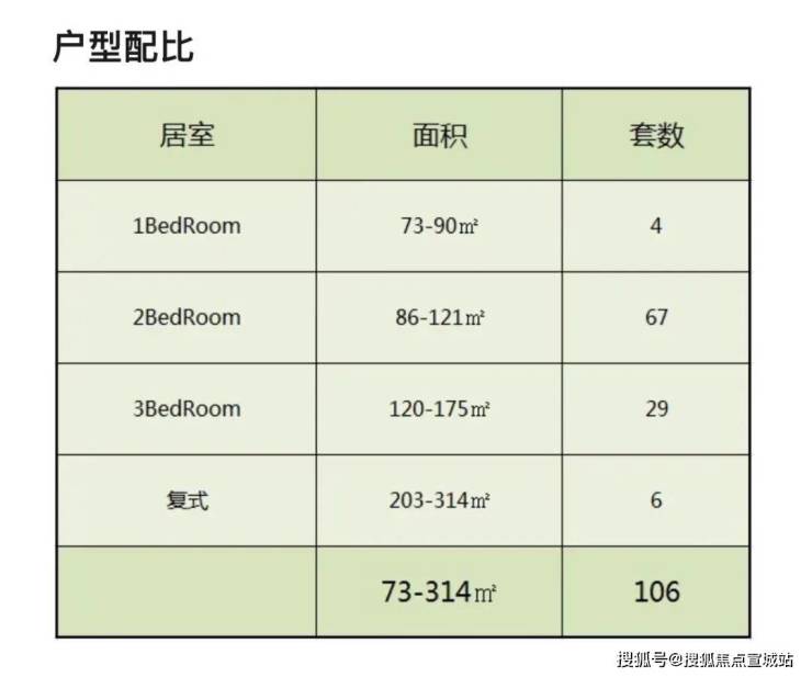 项目户型非常之多,主力户型为86-13㎡平的2-3房,最小73㎡1房不到一千万即可上车内环内,但是也只有4套。