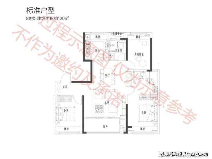 建面约120㎡3房,一梯一户,三开间朝南,南北通透安高海印华庭售楼处电话☎:400-8862-334;全卧飘窗,北房间以及南向次卧飘窗没有墙垛,利用率更高。