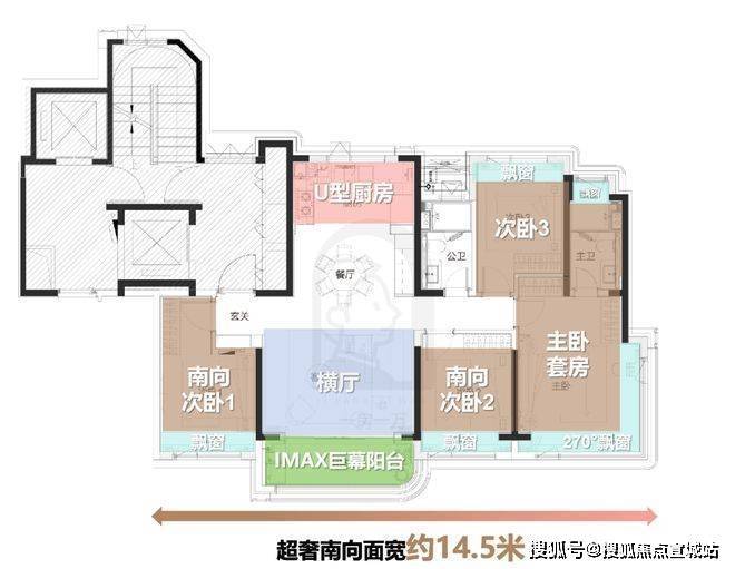 建面约110㎡B1户型,南向面宽也做到了约12.3米,单就这个面宽就秒杀了市面上同类型或同价位段的新盘。