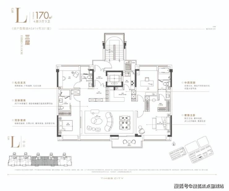 华润置地时代之城高层产品将百平上下的改善户型做出了轻奢级的居住体验,把约133㎡的改善四房做出了豪宅的尺度感。