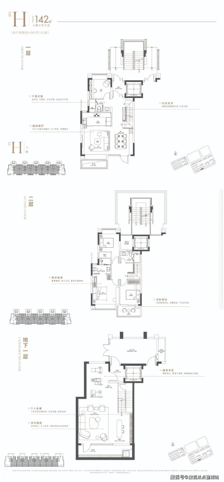 叠墅户型:建面约 140-178㎡,有下叠、中平、上叠多种选择。建面约 174㎡的下叠,一层采光充足,附赠宽绰地下室和公共绿地,主卧有 270 度环幕飘窗;建面约 178㎡的中平户型,四开间朝南,4 房 4 飘窗 2 阳台,双套房布局;建面约 143-177㎡的上叠,拥有南北双露台和双阳台。