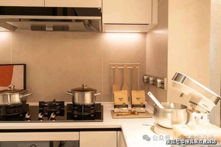 开放式厨房设计,更有效促进家人间交流互动!吊轨移门开合设计,更具生活意趣~