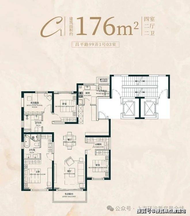 户型面积:主力户型为建面约 165-280㎡的 3-4 房,得房率 80%-83%,层高 3.5 米,采用准 1 梯 1 户设计。其中 176㎡户型为四开间朝南 + 双阳台,南向总面宽 13.8 米;188㎡户型为大横厅 + 双套房 + 独立家政间,8.5 米宽厅与北向观景阳台形成南北通透格局;274㎡顶奢户型有 11 米巨幕横厅搭配全景落地窗,并配备独立书房及 15㎡空中露台。此外,还有 88-329㎡的多种户型可供选择。