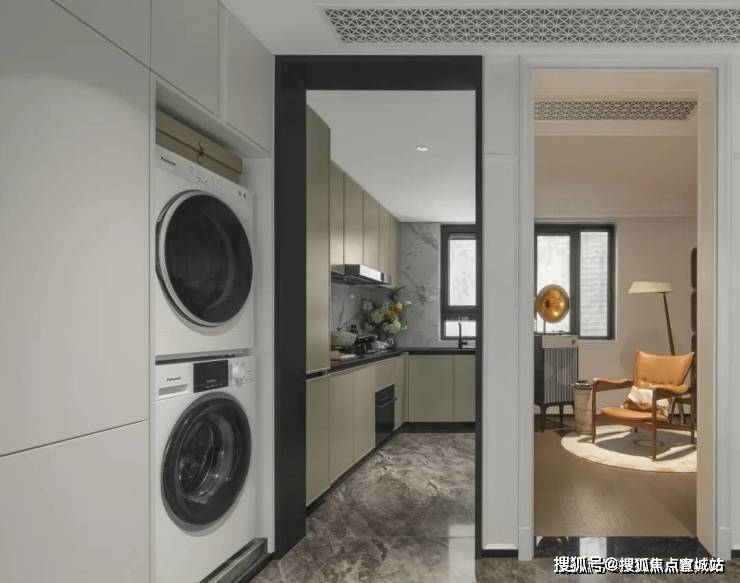 厨房空间是“L”型布置,整体柜子量很充足,冰箱和洗衣机放在外面的隐形柜内,所以厨房里面空间也一点不压抑。