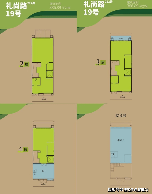 标准户型:地上4层(1~4层)、地下2层(夹层、B1层),多层商业空间,可灵活设计;外设独立门牌,内设独立电梯★,B1层可直达地下车库;首层设南北双门,连接绿化*;预设太阳能热水系统