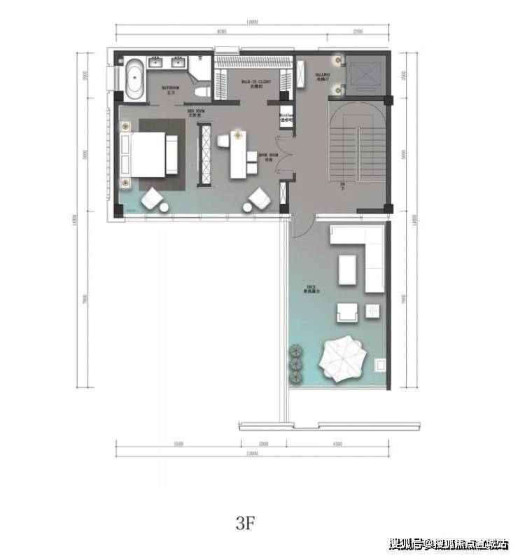 三层端厅式大空间,只打造尊贵一室,利用近乎一整层的面积来满足供主人休憩+工作结合的心灵栖息之地,南向270°大采光面+超广角视野,赏一年四季风景如画。独立步入式衣帽间及带浴缸大卫生间的点缀,更加彰显仪式感、开阔感、功能性、舒适性、私密性强。