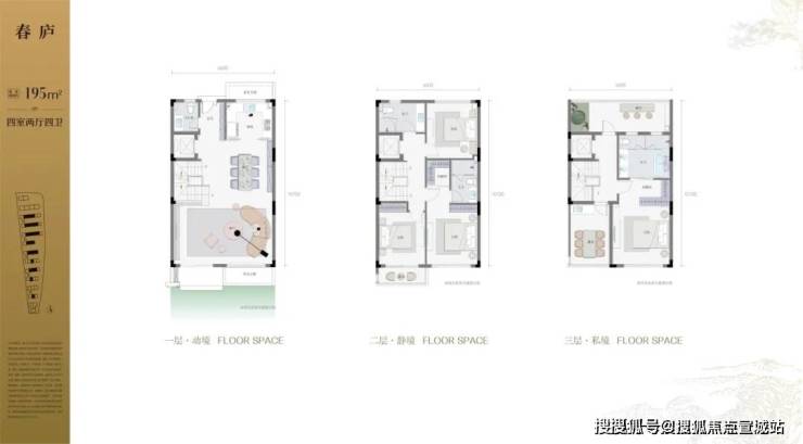 三居功能,承载三代同堂,涵养人生雅意情怀;三层整层主卧套房,居奢室、揽大境,搭配南北约25㎡星空双露台,引自然光影入室,品悟望族风范;