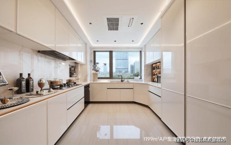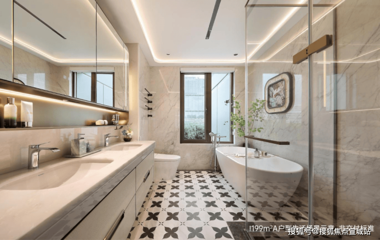 建面约199㎡户型精装风格为白金色调,选用皇家白玉、太古黑金、安第斯雪景、希腊木纹等名贵奢石,巧妙搭配在地面和墙面空间。配置大金中央空调、霍尼韦尔新风、菲斯曼地暖三大件,以及博世、方太、汉斯格雅、杜拉维特等品牌。