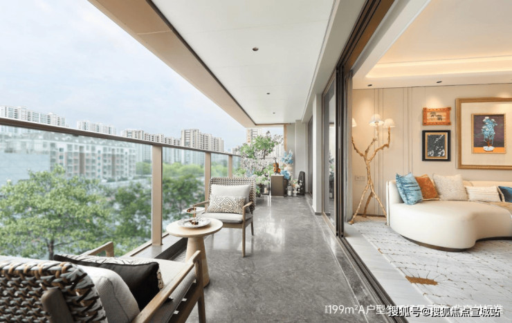 项目涵盖建面约199㎡观云奢宅&建面约371-452㎡中式排屋。高层类一梯一户,专属电梯前厅;采用洄游式通厅设计,LDKB一体化连通,跑道式双联阳台,主次卧均设计为套房。