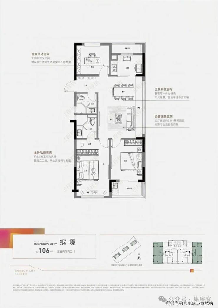 还有一款建面约106方: