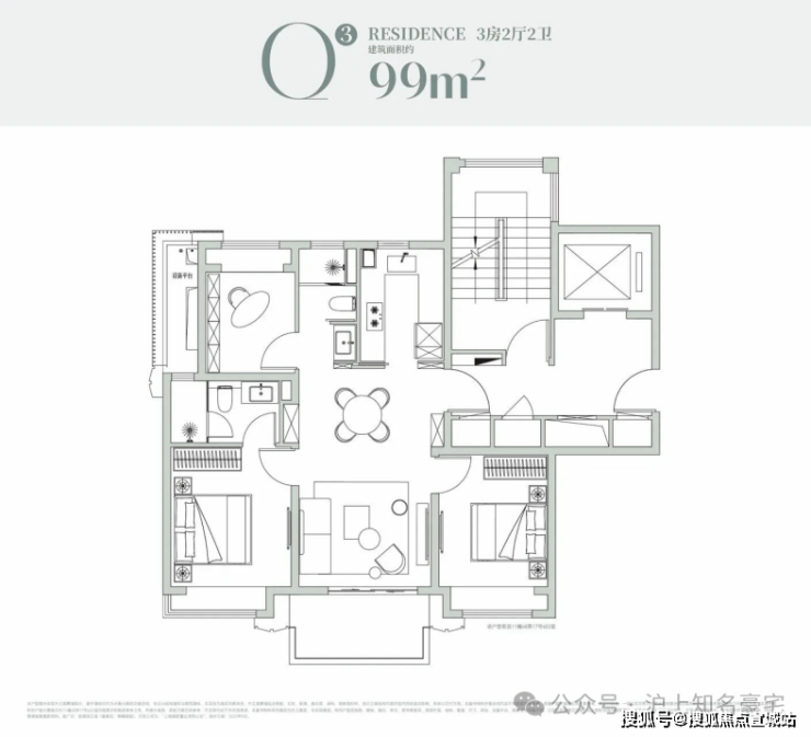 该户型是经典的四叶草布局,四开间分布在四角,兼顾私密与互动,是二胎家庭的优选!