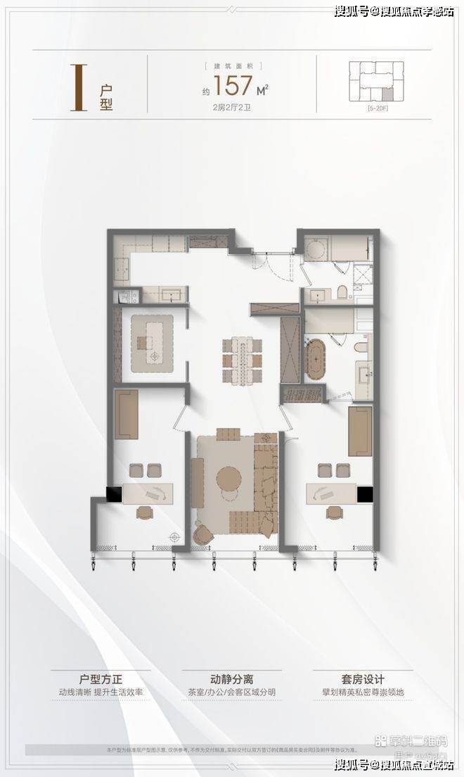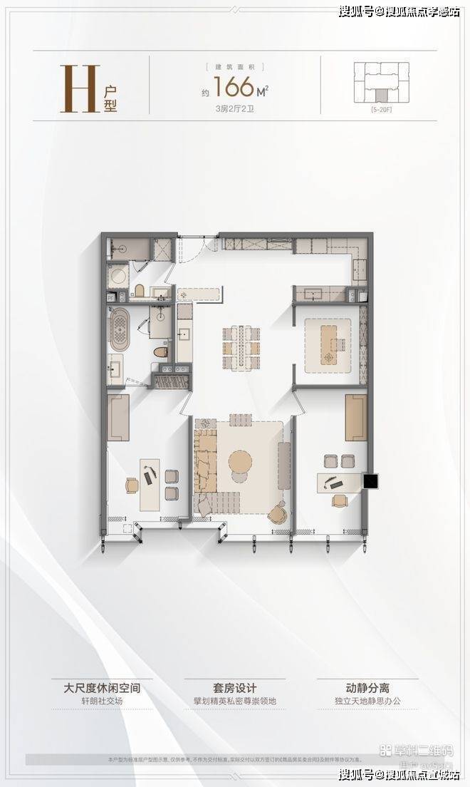 5户型优势:4.2米层高,全落地窗设计,多套房设计满足三代同堂