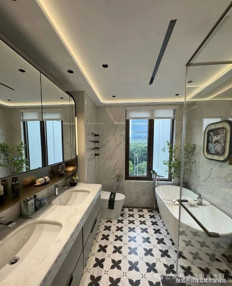 ·精装标杆:标配大金中央空调、菲斯曼地暖、霍尼韦尔新风,厨卫用博世/方太/杜拉维特等国际品牌,连电视背景墙都是安第斯雪景奢石。