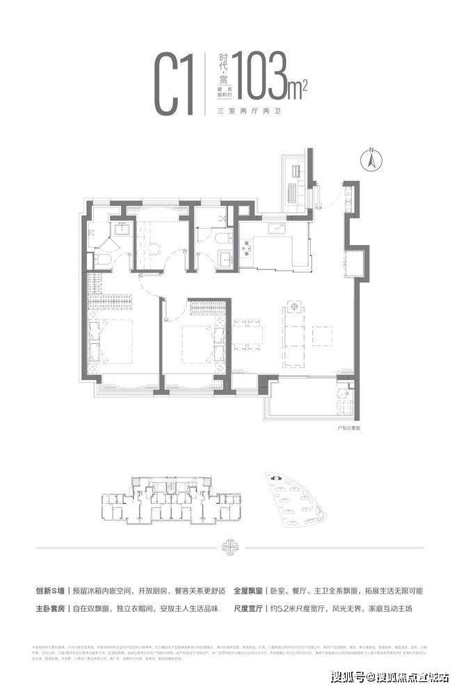 89㎡三房:创新“U型厨房+横厅设计”,实现小户型大空间感,满足年轻家庭首置需求。