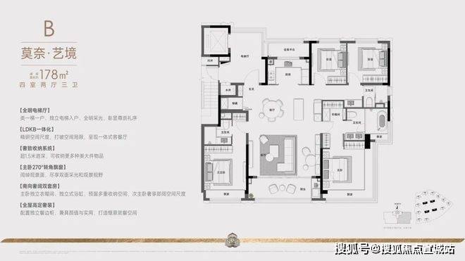 建面约178方四房两厅三卫:这款户型,则站在追求品质改善人群的角度,做出了四房三卫双主套设计。主卧与次卧均为南向套房,两代人生活平权,尊重每一位家人的「私域空间」和「阳光平权」,很多房企都做不到。还配置进深超1.5米的储藏空间,兼顾日常生活的方方面面。