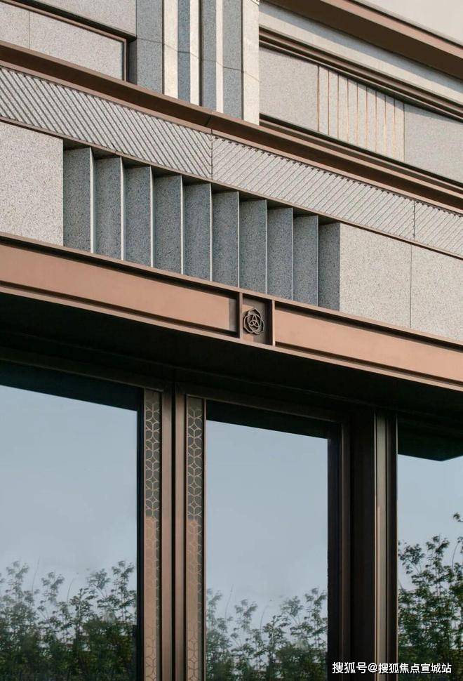 外立面:采用米白色石材与仿石铝板结合,纹理细腻,设计雅奢