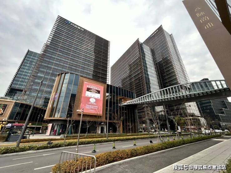 项目距离抖音总部所在的江湾里商枢直线距离约600米,这里的地标建筑铁狮门双子塔以及产业办公楼目前的大多都已落地。