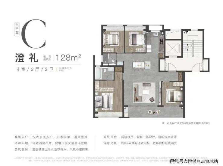 :升级为4房2卫,同样是一梯两户,功能更齐全,能满足多口之家的居住需求。