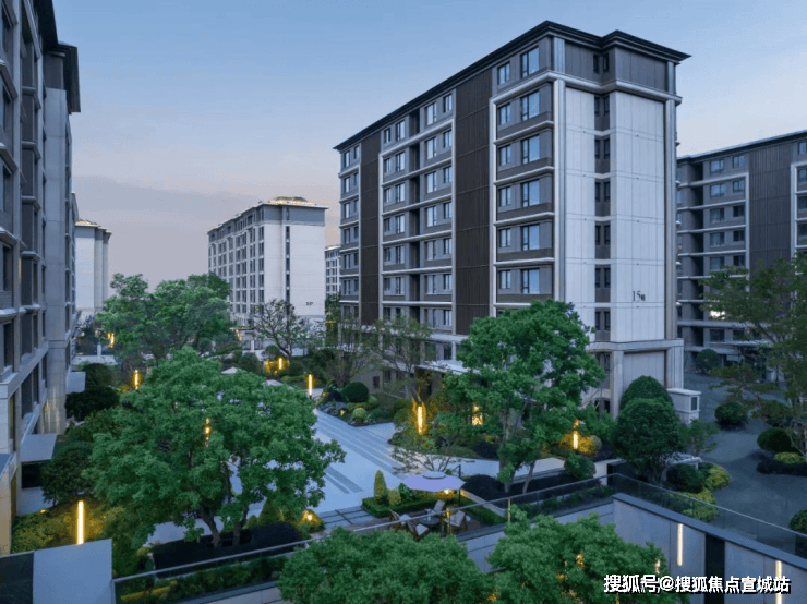 景观上,规划“一环、七园、三巷”的景观布局,打造雅奢酒店式的入户大堂+隐逸摩登都会的园林意境,并参考江南民居“四水归堂”合围而成的庭院,勾勒出动人的中国传统山水画卷。