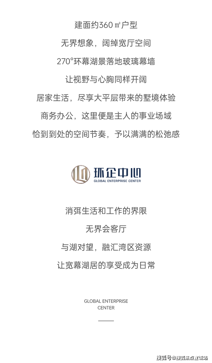 项目核心高端产品,主打270° 环幕湖景、无界空间、塔尖社交: