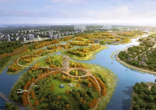 森兰绿地分为北块商务区,中区湖泊绿地公园,南块生态休闲区,与附近的商务区融为一体,发挥出大型绿地在城市发展中的作用,规模浩大可见一斑!