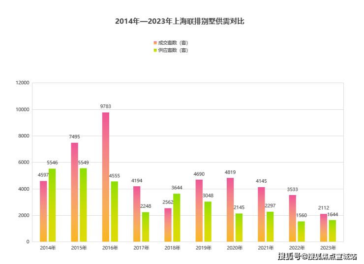 2014年-2023年十年间,上海联排别墅总供应量仅为32236套。