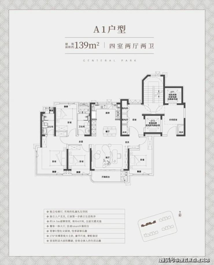建面约139㎡4房户型,套数不多,但产品力绝对惊艳。