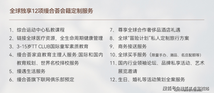 深谙当代世界公民对“第二精神空间”的需求,古北99打造超大商业地带,采用中式建筑风格和功能规制,与京城十大会所之一——缦合北京的「华府会」同源,有社交、商务、运动、志趣、亲子5大主题,涵盖精致私宴、红酒雪茄吧、恒温泳池、健身房、儿童培训、咖啡休闲、多功能厅等,并链接12项全球顶级资源,从运动、教育、旅行、医疗等多维度,为古北纯粹圈层寻回心中的归属。