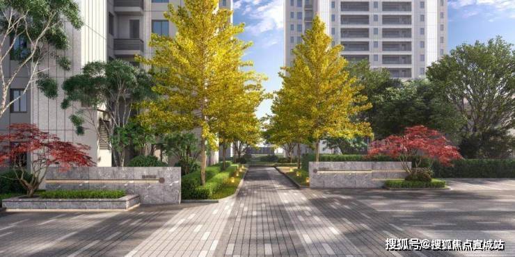 在景观设计中,社区设置有观赏花园、户外会客厅、社区入口等。