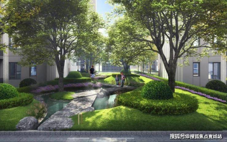 社区集透水铺装、下凹式绿地、雨水花园,景观内融合渗透调蓄排水沟、蓄水池等模块,成就有机循环的绿色生活社区。