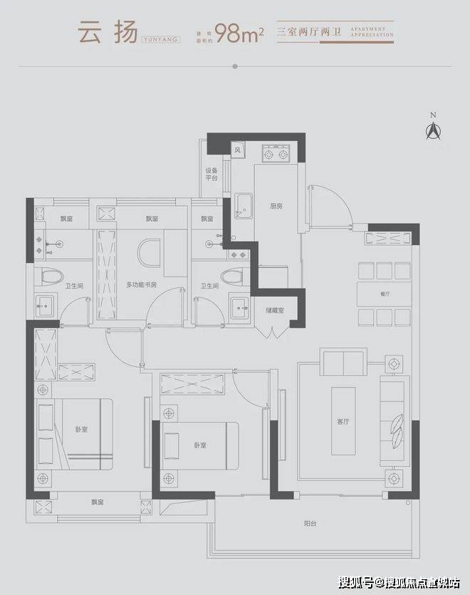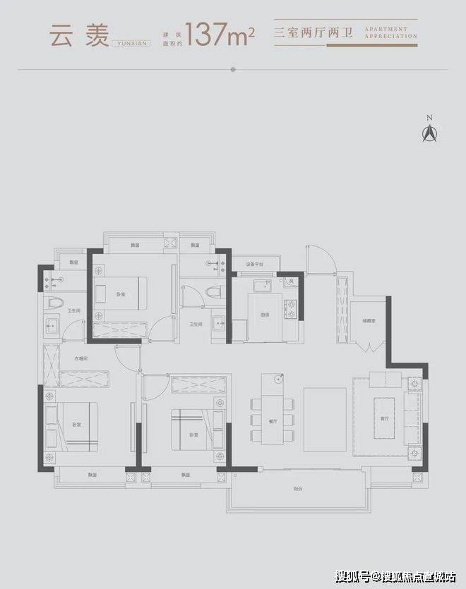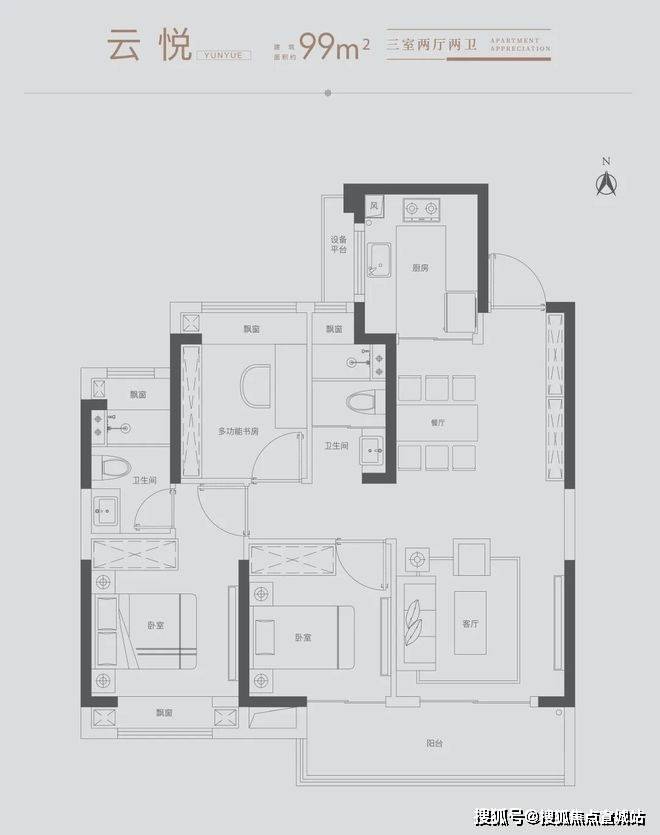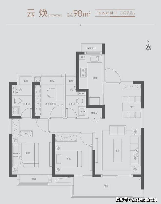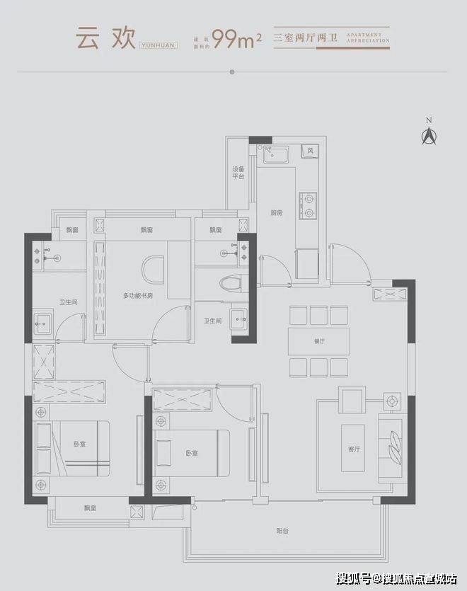 雅致三房:满足三口之家所需,北向房间可改造书房,理想生活一步到位
