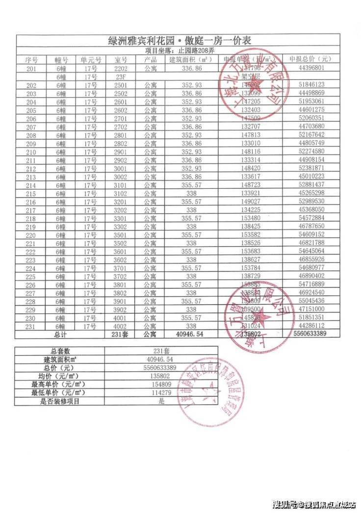 最新批次(四批次)已过会,拟推出建面约320-324㎡公寓,共60套,备案均价136,010元/㎡。